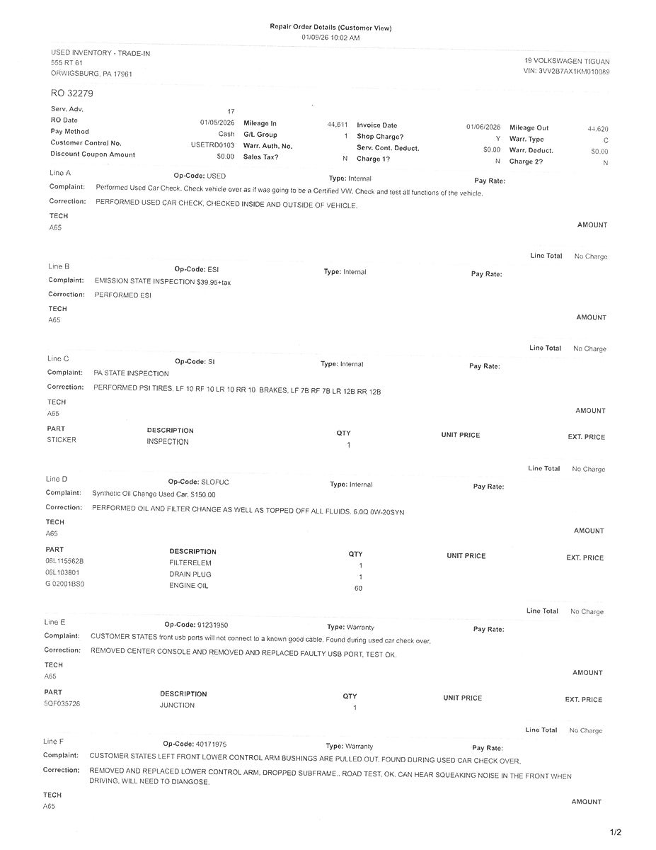 - Vehicle Name: Volkswagen Tiguan